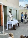 Nouveauté à l'école ! Père Emmanuel est venu rencontré les élèves le vendredi 5 septembre pour une "bénédiction des cartables". Benoît Breton a accompagné cette célébration en musique, pour le plus grand plaisir des élèves.